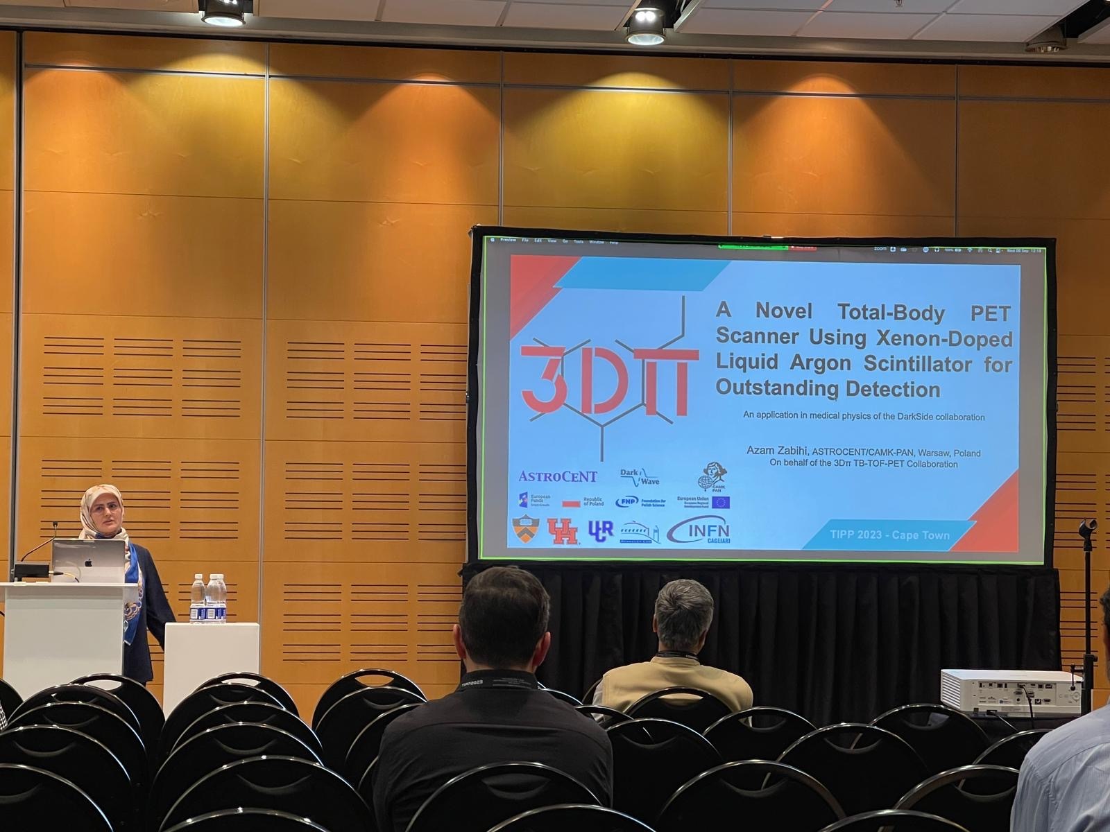 TIPP 2023 was hosted by the iThemba Accelerator Science Laboratory (iThemba LABS), the largest accelerator facility in the southern hemisphere. On the third day of the conference, Azam had the honor of presenting her talk “3DΠ: A new whole-body PET scanner using a xenon-doped liquid argon scintillator with SiPM-based photosensors.”